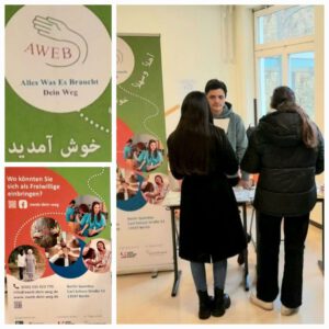 Wir als Ehrenamtsbüro Reinickendorf zusammen mit dem AWEB-Dein-Weg Projekt nutzten die gute Gelegenheit der Veranstaltung für Gespräche rund um das Engagement von und für Menschen mit und ohne Fluchterfahrung.