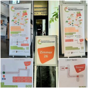 Seit Nov. 2022 machen wir in zeitlich regelmäßigen Abständen mit einem Info-Stand auf die Beratungsmöglichkeiten im Zimmer 26 des Ehrenamtsbüro Reinickendorf die Besucherinnen und Besucher des Rathauses aufmerksam.