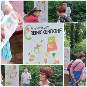 Das Ehrenamtsbüro Reinickendorf präsentierte sich gemeinsam mit dem AWEB-Dein-Weg Projekt, um mit interessierten Menschen rund um die Themen Ehrenamt, soziales Engagement und Umweltengagement ins Gespräch und den wechselseitigen Austausch zu kommen. Das Aufzeigen der vielfältigen Engagementbereiche in Reinickendorf ist bei solchen Veranstaltungen eine gute Gelegenheit das Ehrenamt öffentlichkeitswirksam darzustellen.